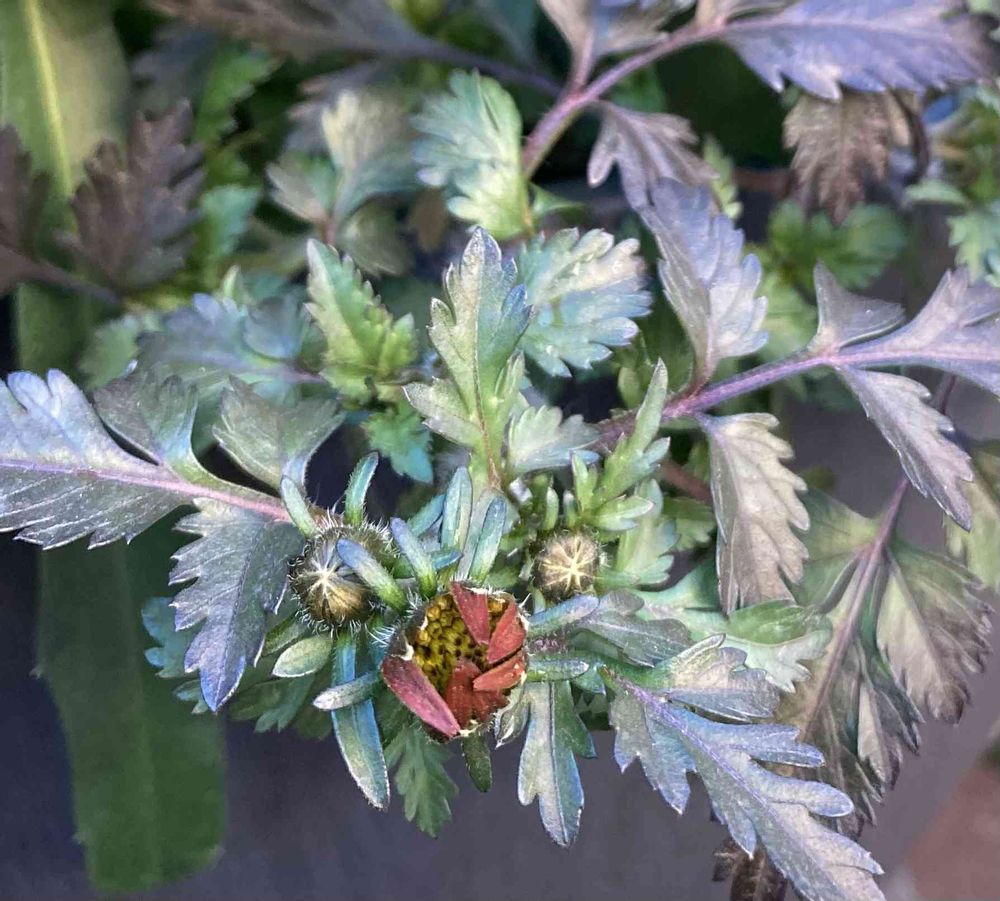 葉っぱは寒さにあたって、黒っぽくなってしまっているのかもしれません?!