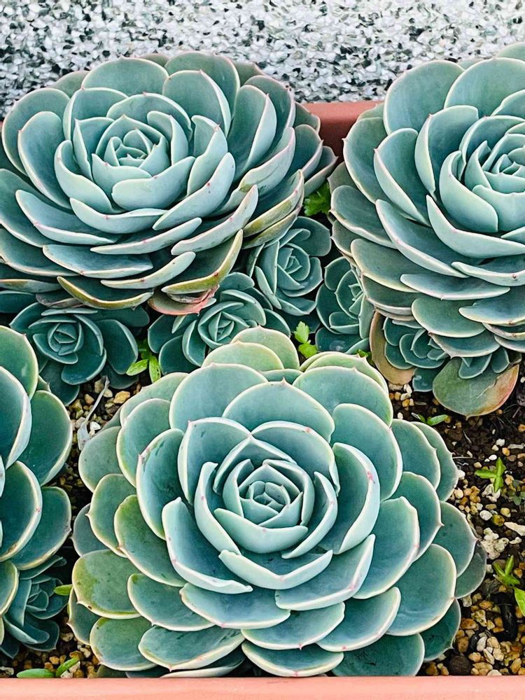 その時の子株が成長したり(バラけた子もいますが)お安い七福神苗を見つけては、集めていろんなパターンで植え付けて育てています。