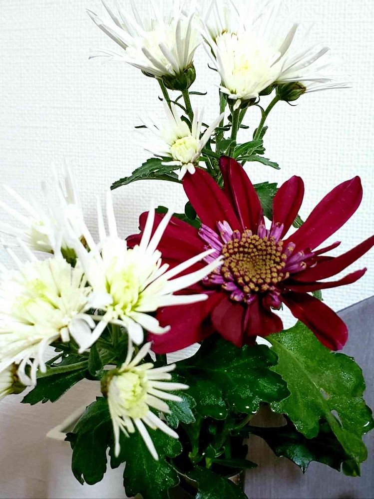 昨年植えた菊の花がもう一輪の残り切り花に活用、最後の一輪は月命日の仏壇花に夫も喜んでくれてますねぇ☺️