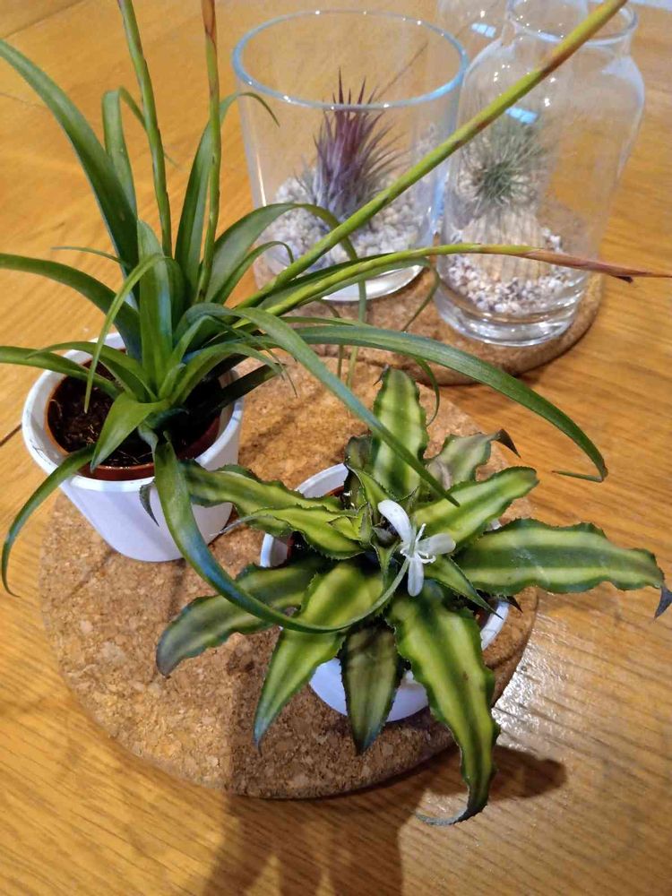 クリプタンサス。こんなの買ってみたのは初めてで、育て方などほとんどわかりません。この間あぁ何か蕾のような物が出てきたなと思っていましたが、その時はそのまま茶色くなって終わってしまいました。そして今日気が付いたら小さな花が!!