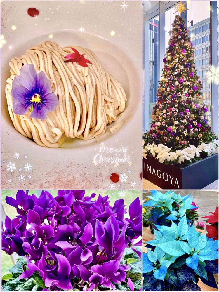 クリスマスコラージュ、大好きカラー💙💜のお花で編集してみました👍💕