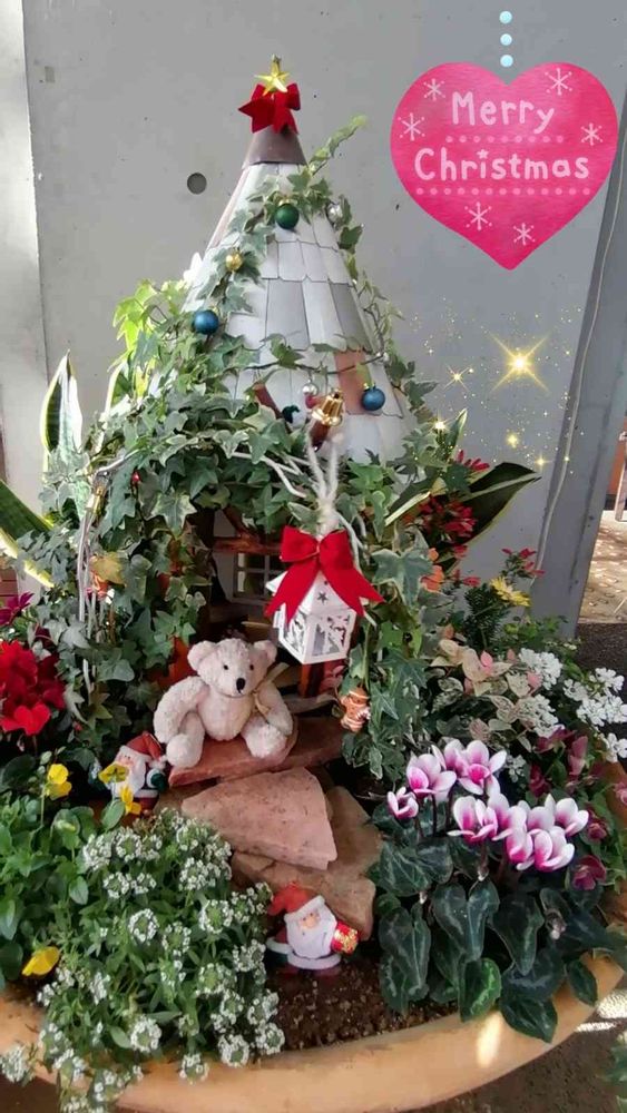 素敵な寄せ植えですね😄🎶カワイスギルー😆🎄🌸