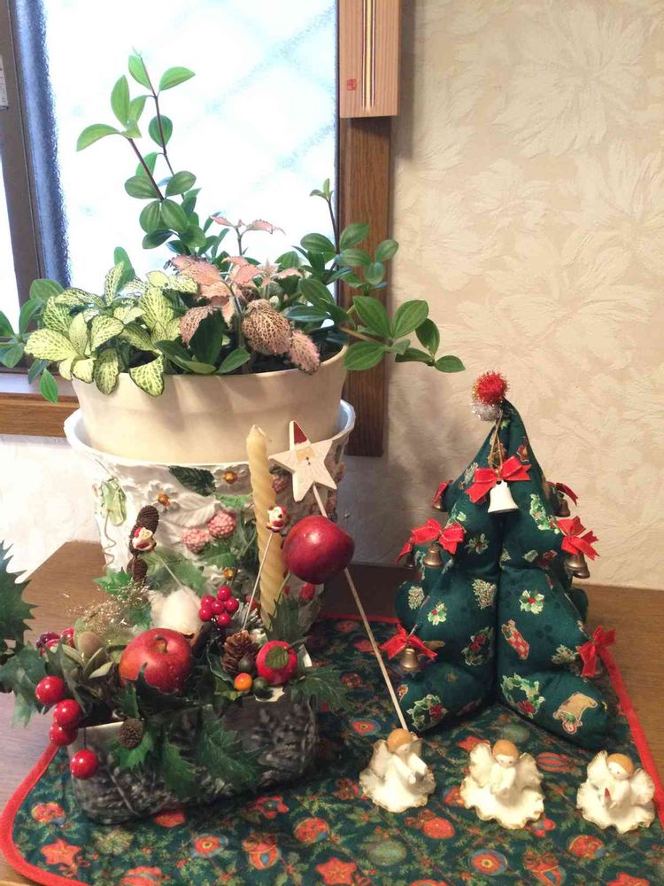 フィットニアとペペロミアが大分大きくなりました。クリスマスの飾り物と一緒に。