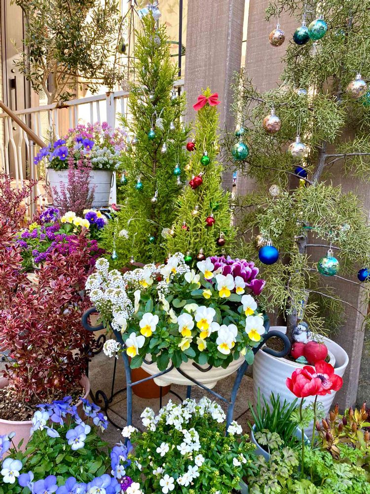 毎年コニファーに飾りつけをして楽しんでいます🎄♪