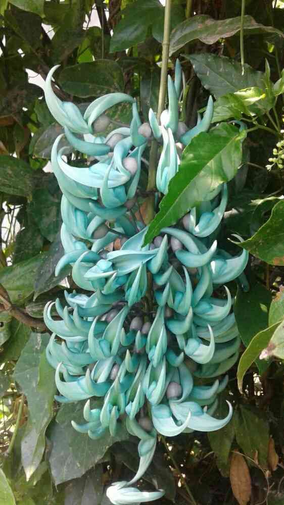 初めて見た植物園のヒスイカズラと比べると、花がびっしりとついてますね。ひとつひとつの花もしっかりしていて、力強さを感じます✨本来の姿はこちらなんでしょうね😊植物園のものも、管理され環境は適しているんでしょうけど、オオコオモリはこっちを選ぶでしょうね😃👍
