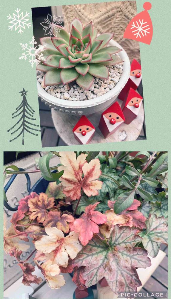 寄せ植えのヒューケラもクリスマスカラーに色付いてます!