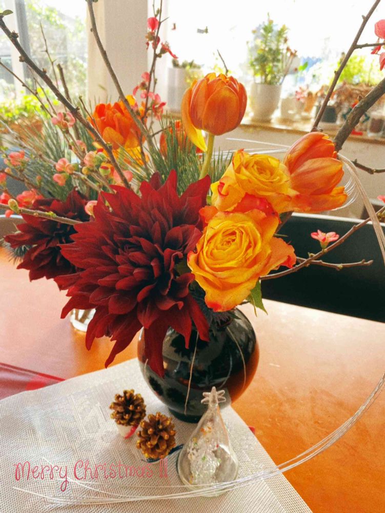 ピコさんのデスク,クリスマス,赤い花の投稿画像