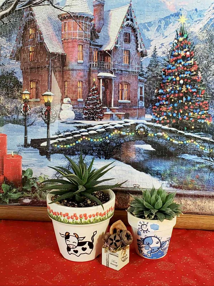 今日はクリスマスイブだというのに、わが家ではクリスマスらしい雰囲気に全くなっていなかったので、去年仕上げた、クリスマスの図柄のジグソーパズルを出してきました。😄