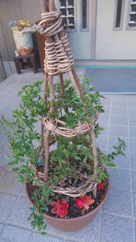 絡ませているクレマチスはなんというものですか?曲がっていたり、出っぱったところが自然な感じでとてもいいですね♡♡(*´ω`*)