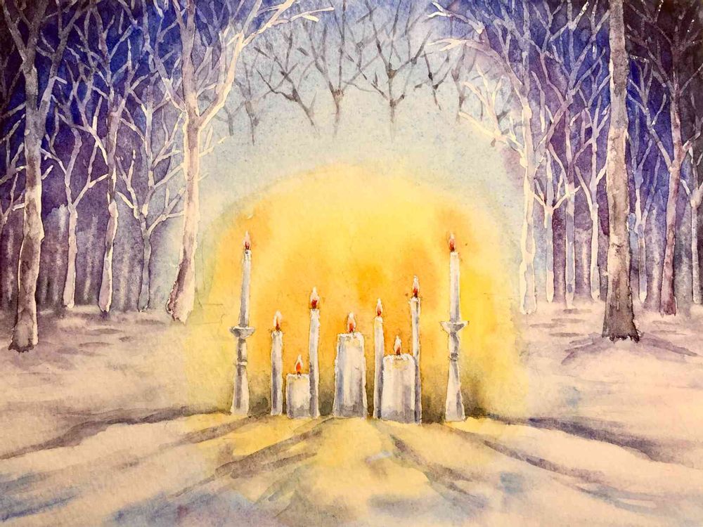 森の中の聖夜のイメージで、この絵にしました。
