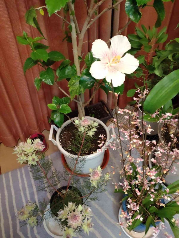 ハイビスカスの白は、レッドフラミンゴを買ったら、ネジネジの中に入っていました。ライバルの赤の枝をカットしたから、今は伸び伸びと咲いています。咲くのは、嬉しいです(⌒▽⌒)♡♡♡♡♡
