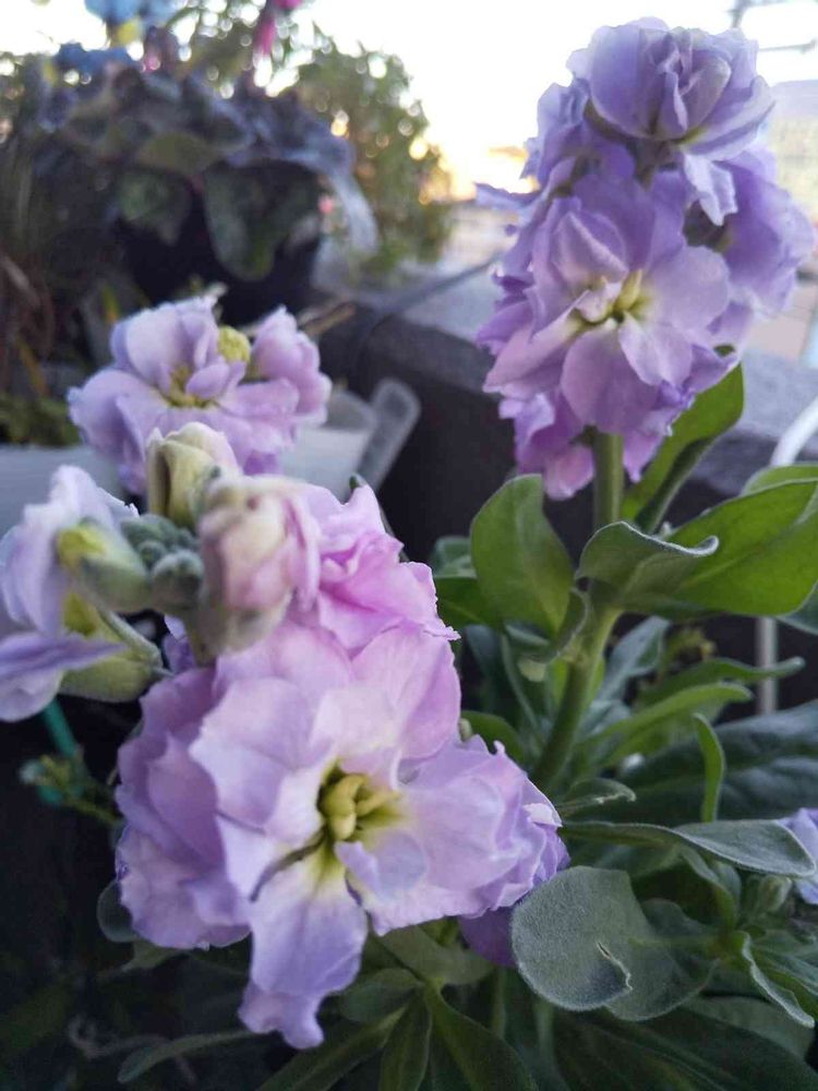 薄紫のストック…💟💮💜💚植えるときに…真ん中の一番高い茎折れたのょ…(;_;)💧💧💧…
