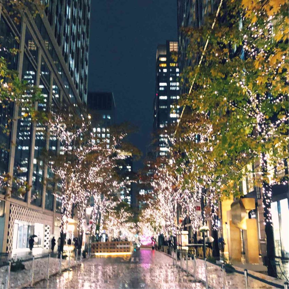 雨が降っていて濡れた路面に光が反射してとてもきれいでした。
