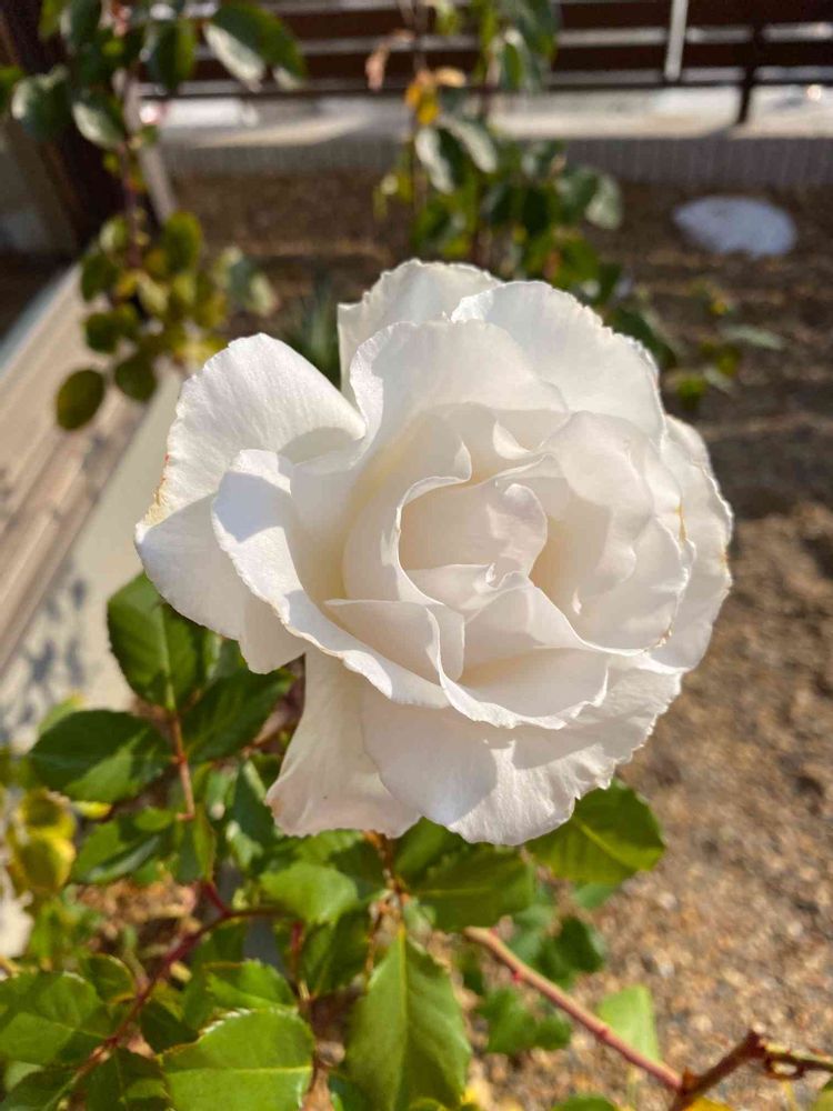 雪のように白くは無理がありますが、今年最後のメリルが咲きました🌹