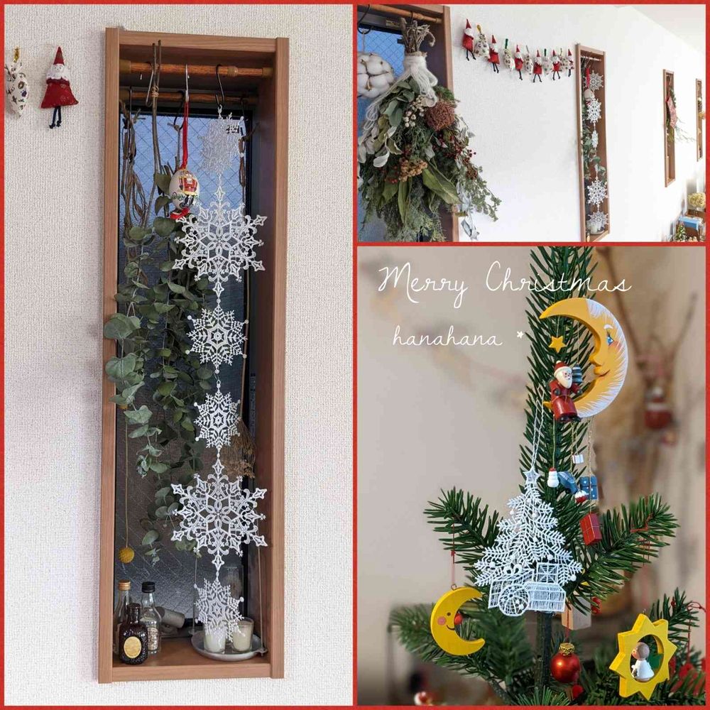 hanahana さん宅🎄この時期こんなに楽しくなるのですね😆こんなに綺麗なレースのオーナメントってあるんですね。雪の結晶❄️✨❄️✨オーナメント美しいです。