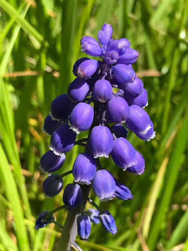 ムスカリが春の日差しを浴びて紫に輝いている。