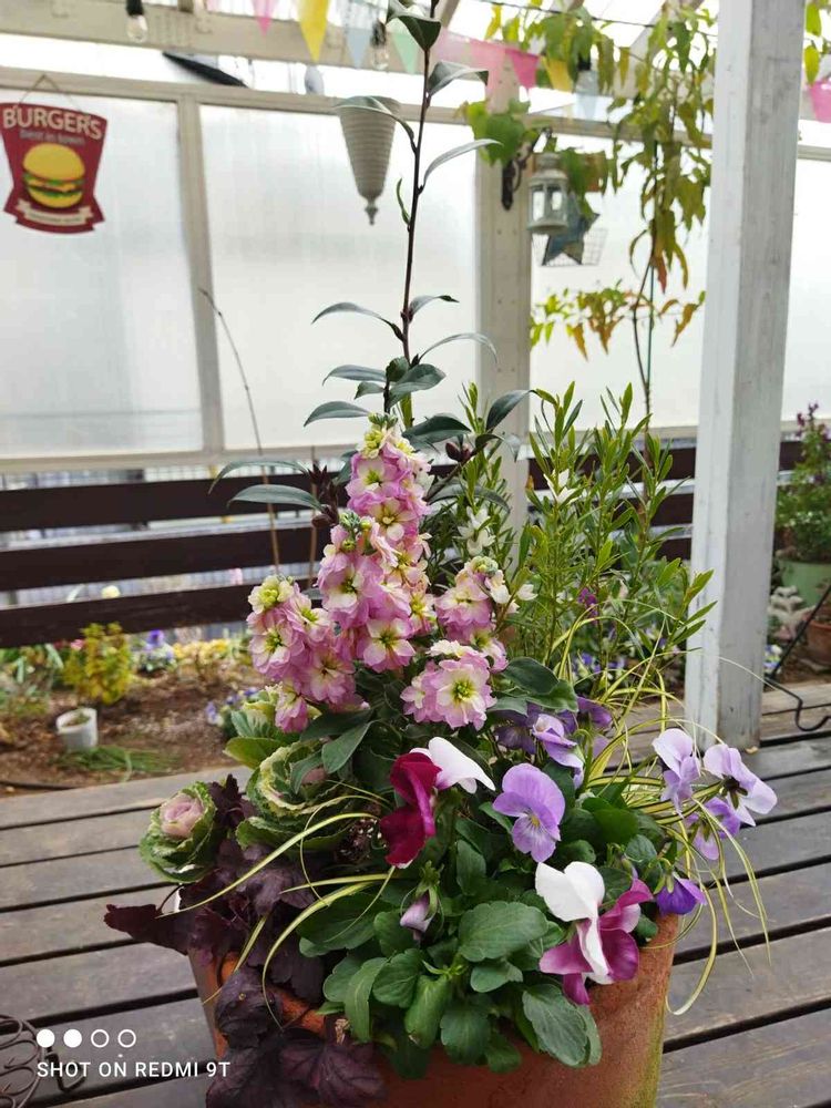 小さな椿とヒューケラだけになってしまった植木鉢に、お花を足して少し賑やかに🌼