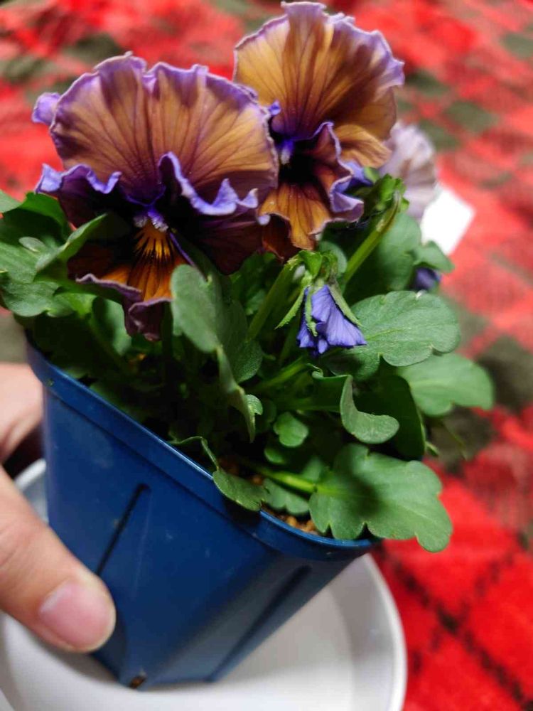 パープルとオレンジの組み合わさった、アンティーク且つシックなビオラです❣️