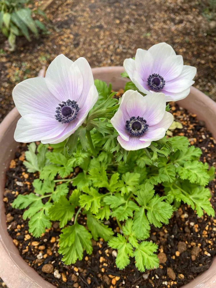 先日お迎えしたアネモネが開花しました♪ 赤や青の妖艶な感じとはまた違って、上品で気高い雰囲気が良き!