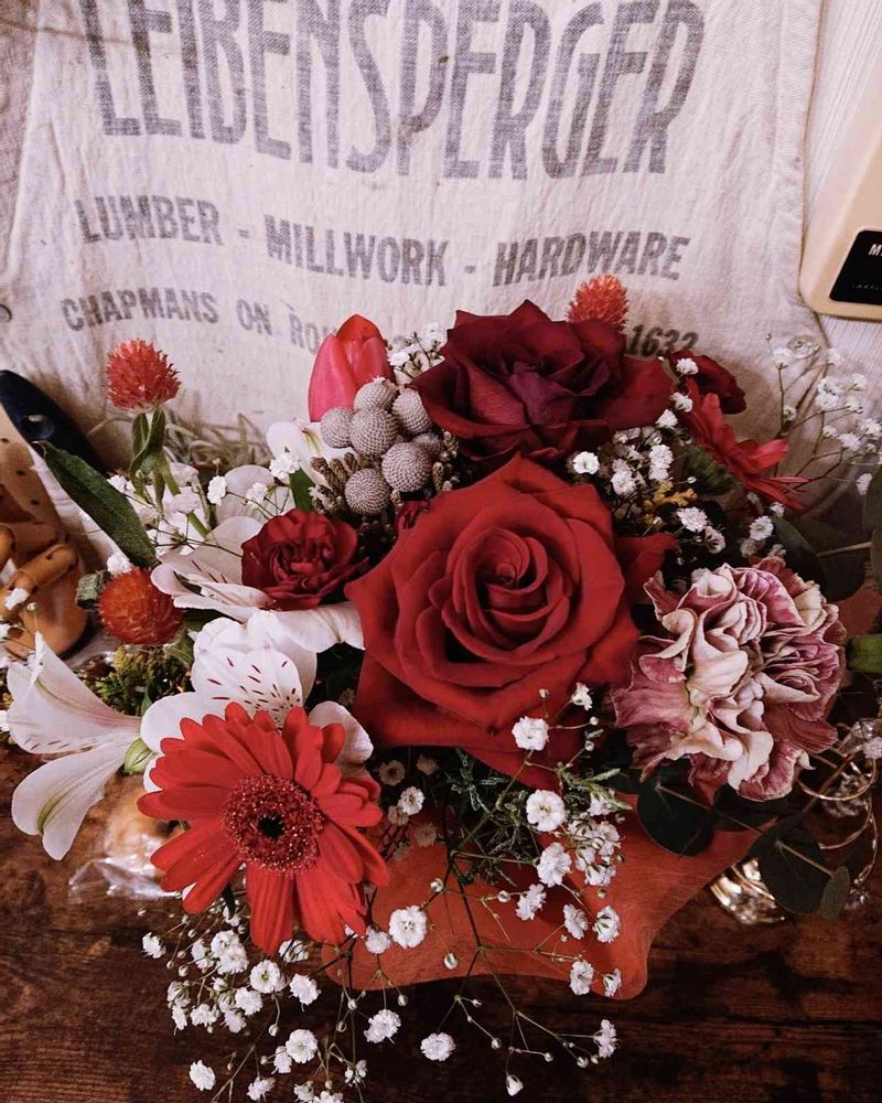 「白は、かすみ草、左下少しおれんじっぽいのはガーベラかな?」かも!