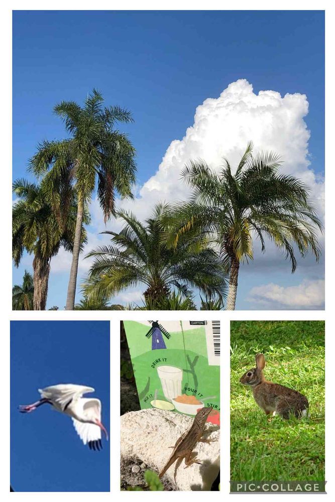 ヤシの木とシロトキ🕊トカゲ🦎ウサギ🐇