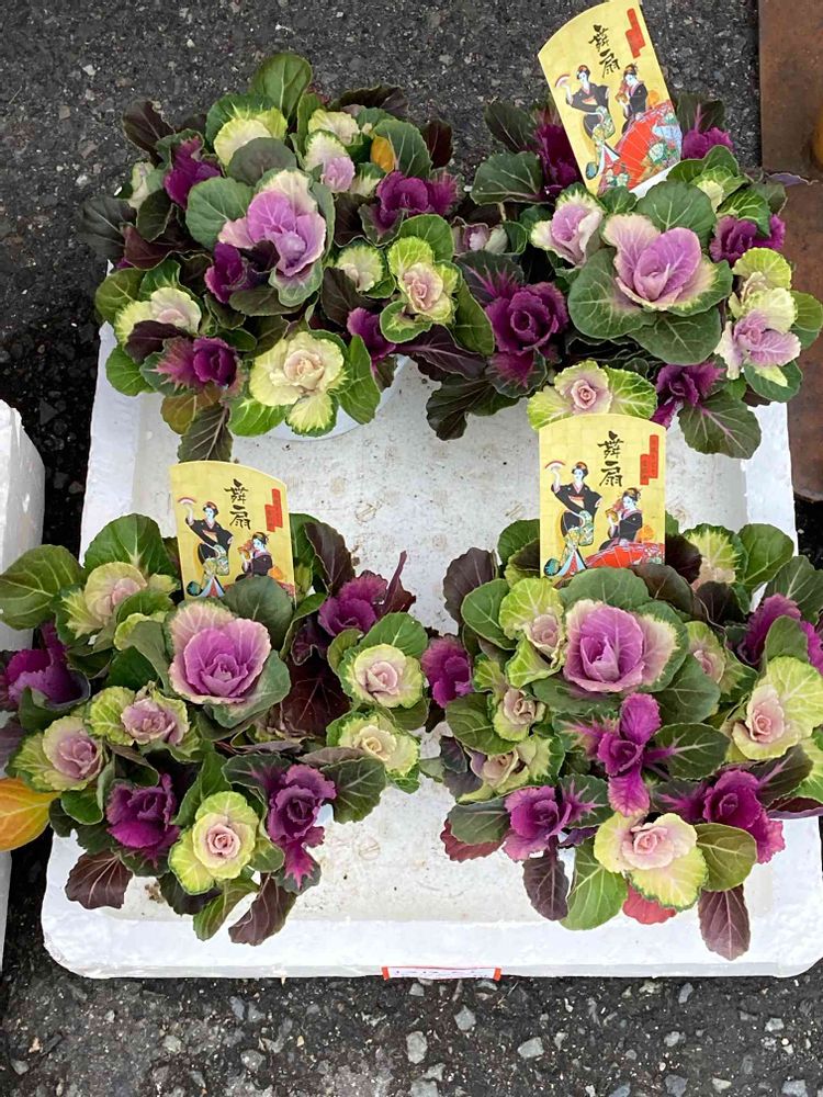 いつも行くスーパーマーケットに正月用ミニ葉牡丹寄せ植えが入荷してました。