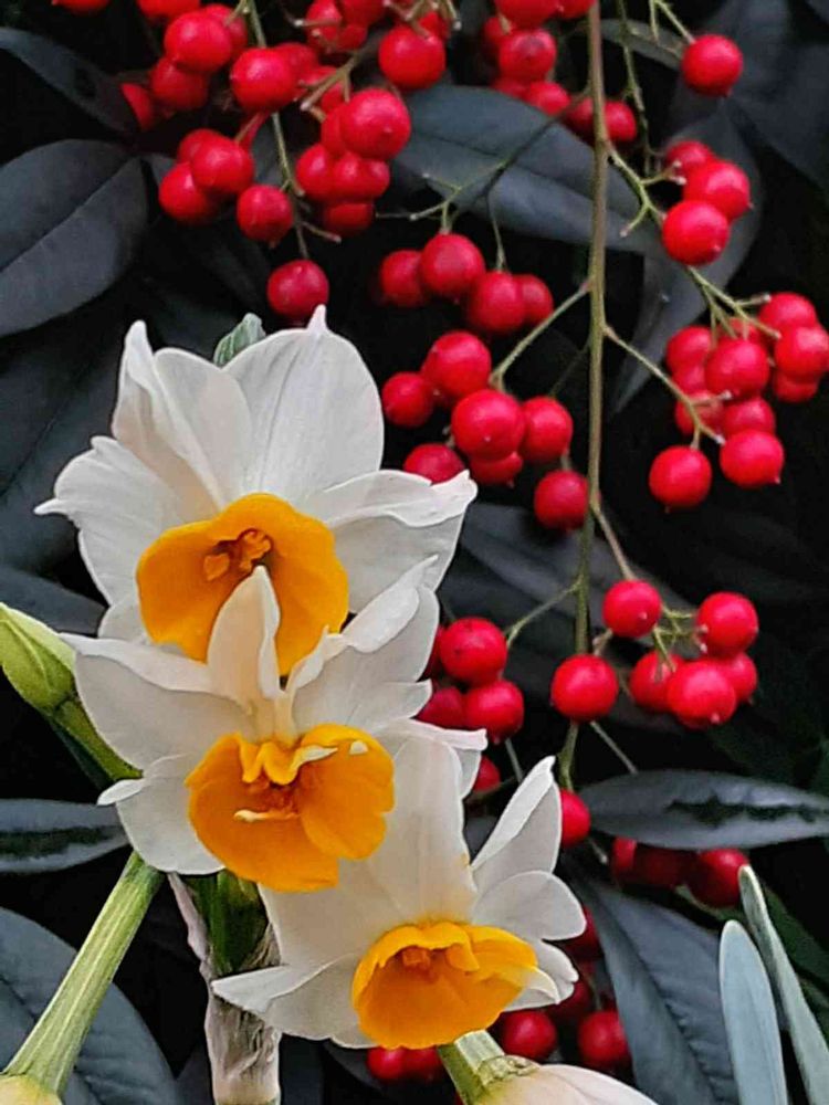 お出かけ先, 水仙,南天ナンテンの投稿画像