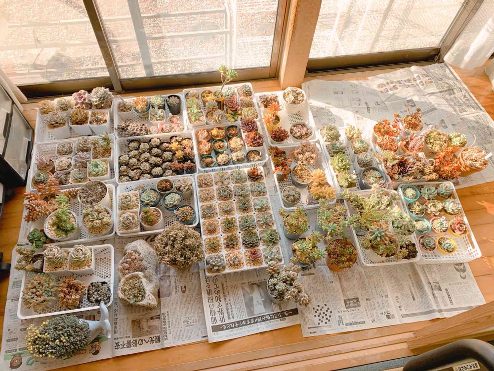 多肉チャン達お部屋の中だけどおひさま浴びて気持ち良さそうですね🥰