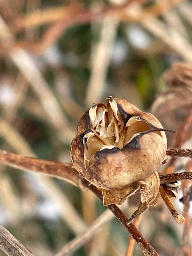 花の時期よりも唇が大きくほころぶようです。キレンゲショウマの朔果は長い間、残っていますから、春先にお目にかかる事ができるかも知れませんね😊