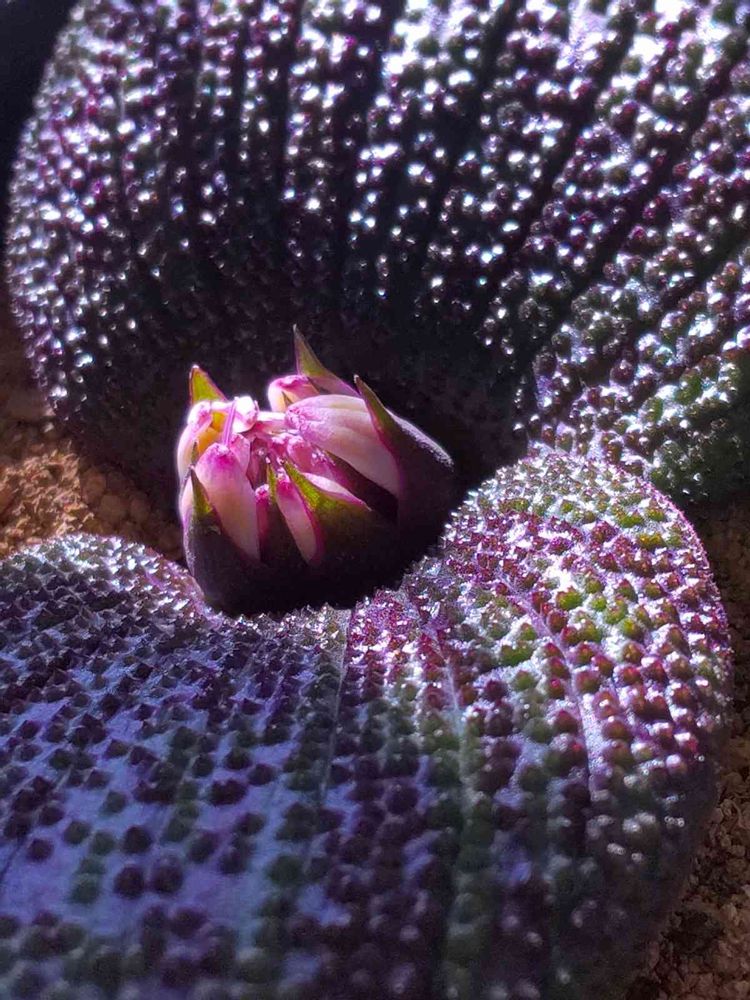 紫玉ねぎ…じゃなかったマッソニア・プスツラータさんが咲きそうです😻💜🤍💗💚