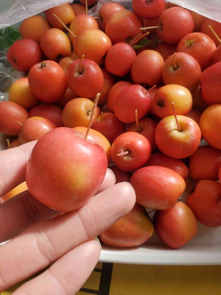 この姫リンゴは毎年クリスマス頃に収穫してます☺️本来は10月末頃に収穫するらしいですが💦完熟させる為に12月まで放置します✨未熟果はジャムくらいしか使い道無いですが完熟させると生食出来ます😌