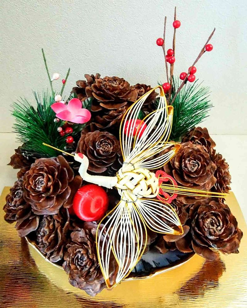 いつかのシダーローズがこんなに素敵に、しかも和風お正月用に変身してる〜🎍✨