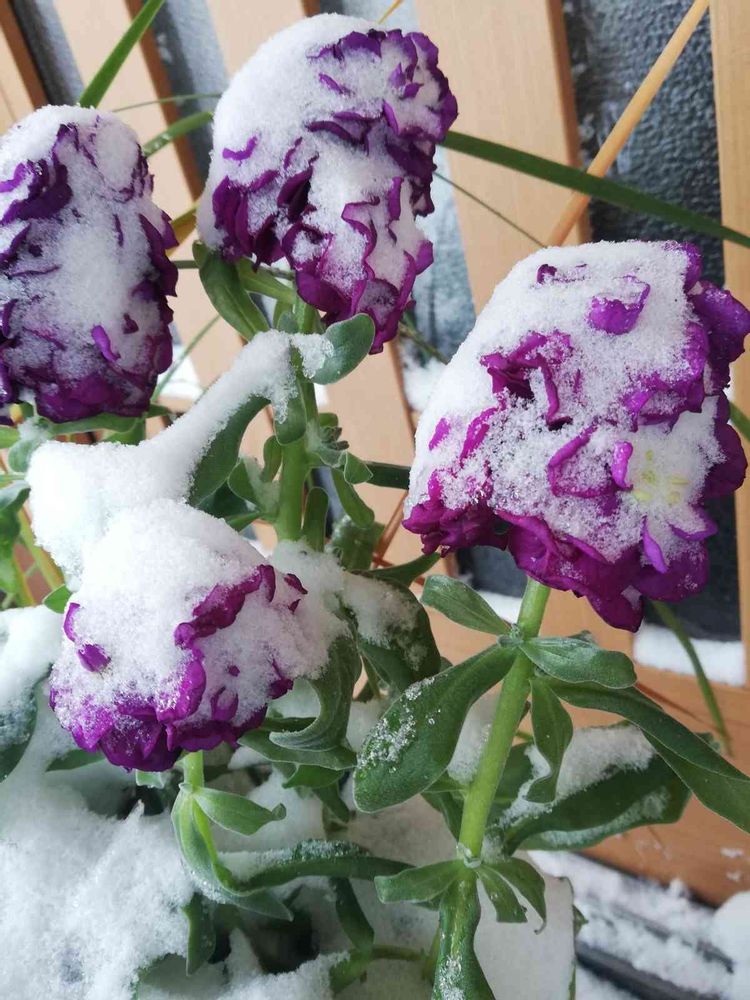 お花はストックさんですね😱寒そうですね😰こちら九州福岡でも今朝から雪❄️が時折ちらついています。朝イチで買い出しに行き、今は家にこもっています🎵