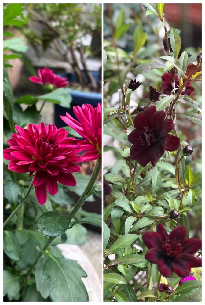 ポンポンマムとチョコレートコスモスか咲いていたので、切花にしてお墓参りしてきました。