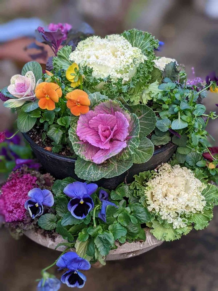 葉牡丹とビオラとパンジーを買って来ました🤩🪴🌷 2段仕立ての寄植えを作ってみました🙋