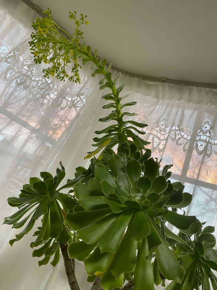 他の鉢で、挿木して2年目の黒法師が同じように花が咲きそうなので、年齢?は関係ないようです。