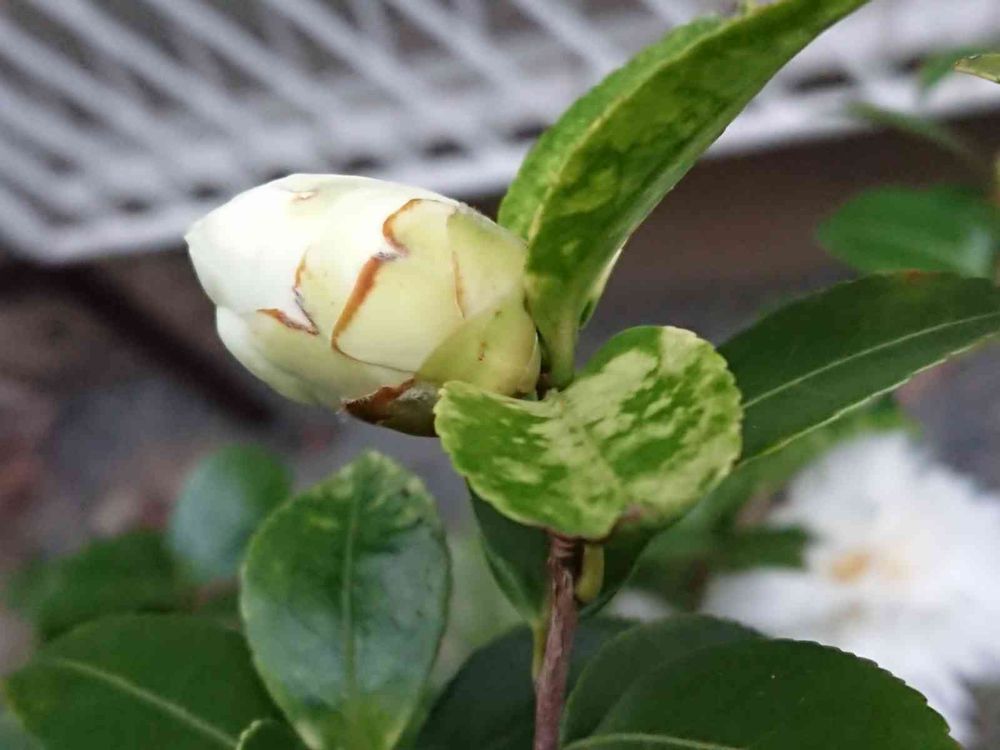 白い八重咲き山茶花。