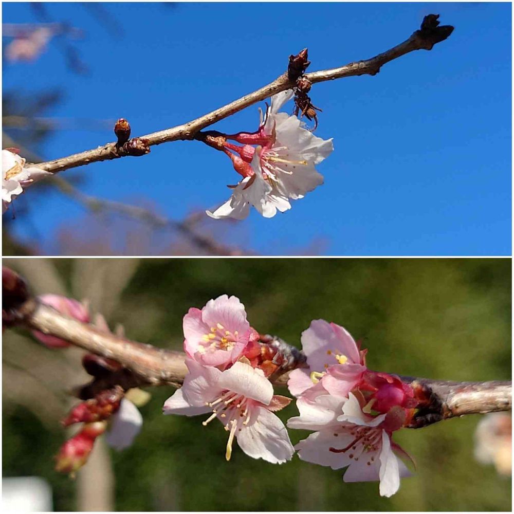 寒梅かと思いましたが、花柄が、短いけど有るので「寒桜」? でしょうか。