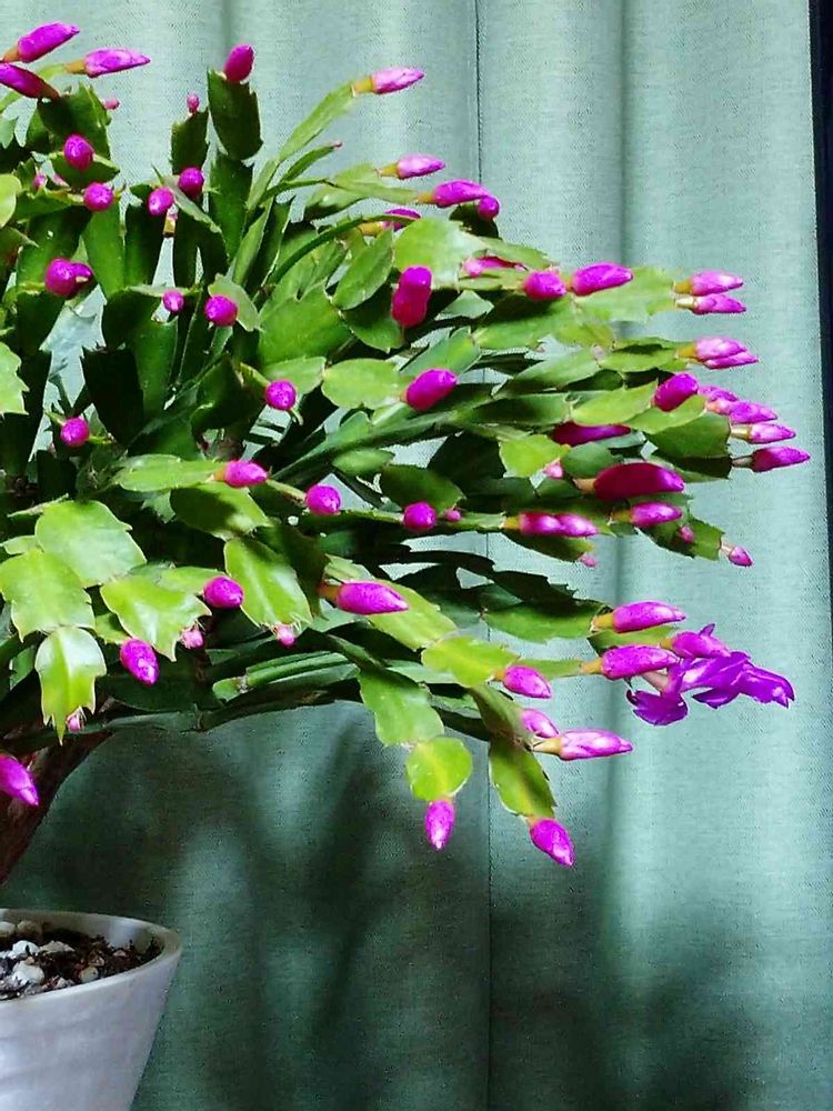 濃いめのピンクのシャコバサボテンが膨らみはじめました。