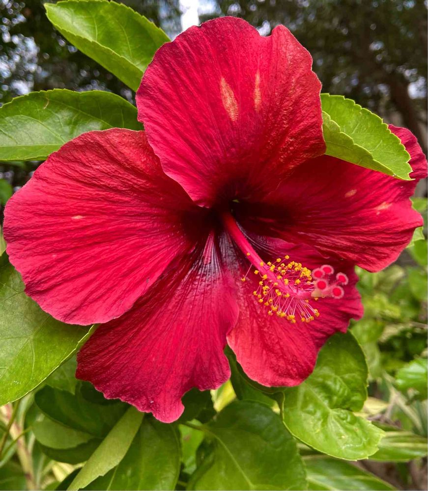 やっぱり赤はクラシックで良いですネ〜‼️小柄や八重はたくさん咲いてますが、この木はちょっと奥にあって初めて気付きました🌺🌺🌺