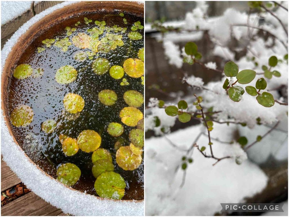 メダカ鉢はシャーベット状になってきましたメダカは下の方に隠れているかな🙏