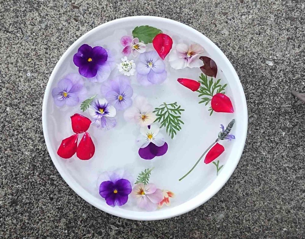 今朝も氷点下近くまで下がるという事で氷中花を作ろうと思い、昨夜、器に水を張って花を浮かべておきました💠💠💠