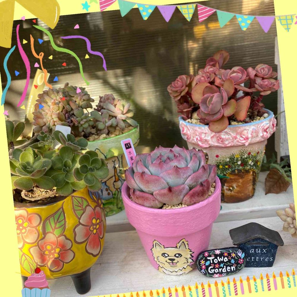 ピンク色の鉢にtowaちゃんU´•ﻌ•`Uが描かれてるんだね😊