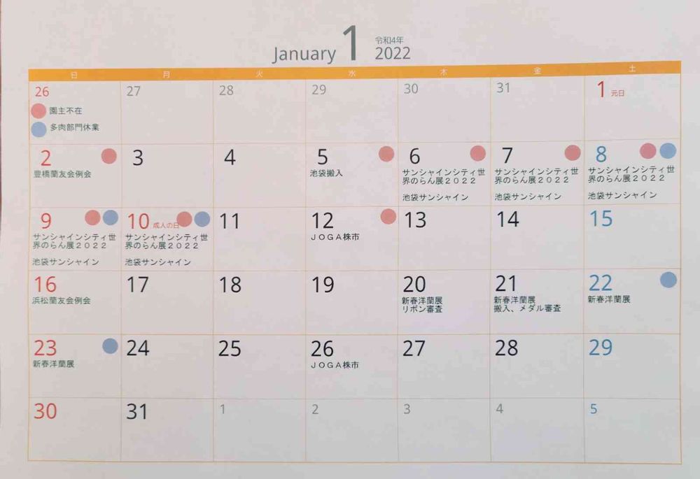8日~10日は、おケイさん帰省の為、22日~23日は新春洋蘭展開催の為、多肉部門は休業させていただきます。