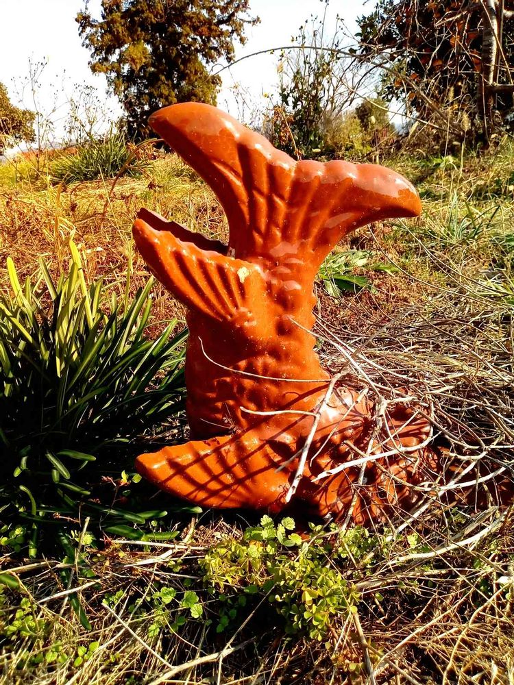 買い物帰りに、通り道のお宅の畑に、鯱が対で置かれていました。1つはかけていたので、此れだけ投稿しました。