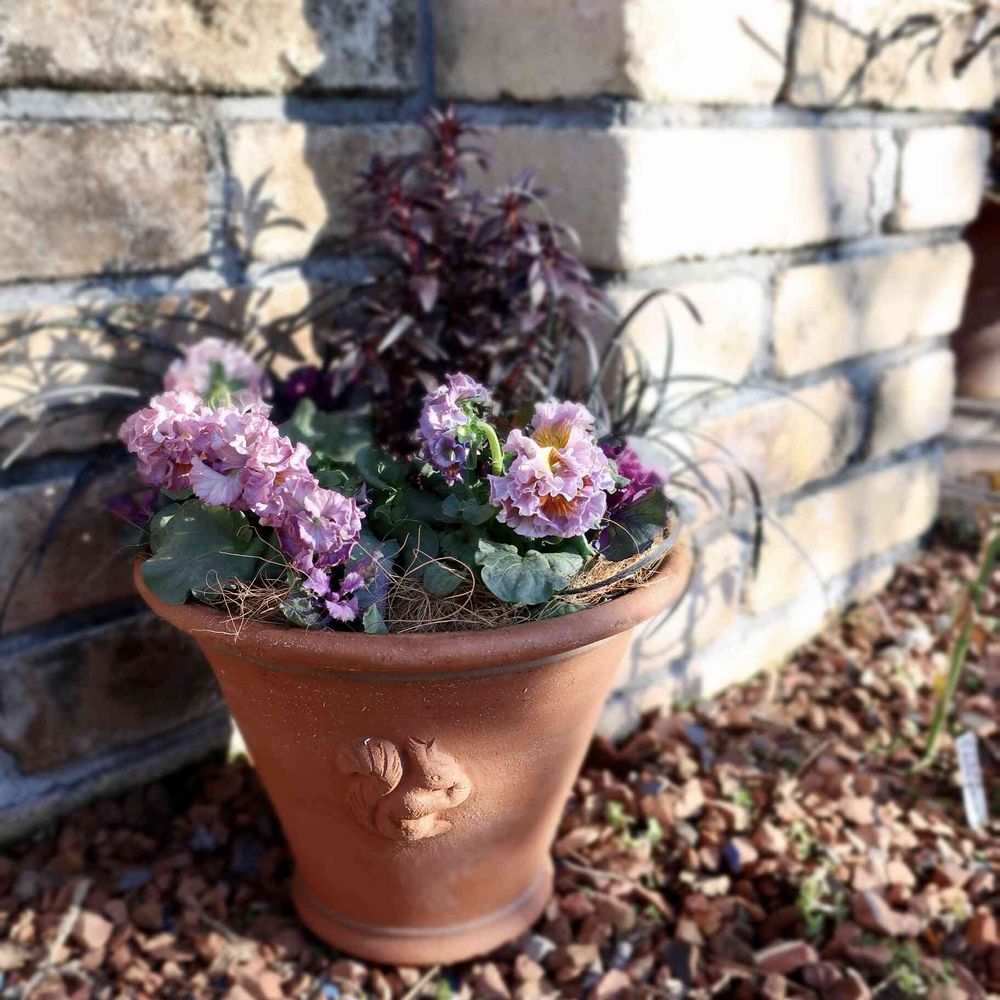 こちらだとテラコッタの鉢は外に置くと春には割れてしまった姿が😩