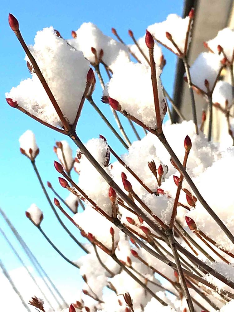 こんな雪の中でも蕾が頑張って咲こうとしていて嬉しいですね😊