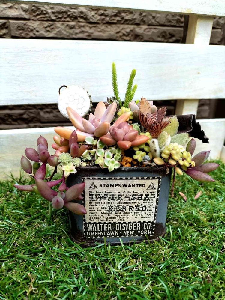 このジャンクな感じのリメ缶にもりもり寄せ植え好きです❣️