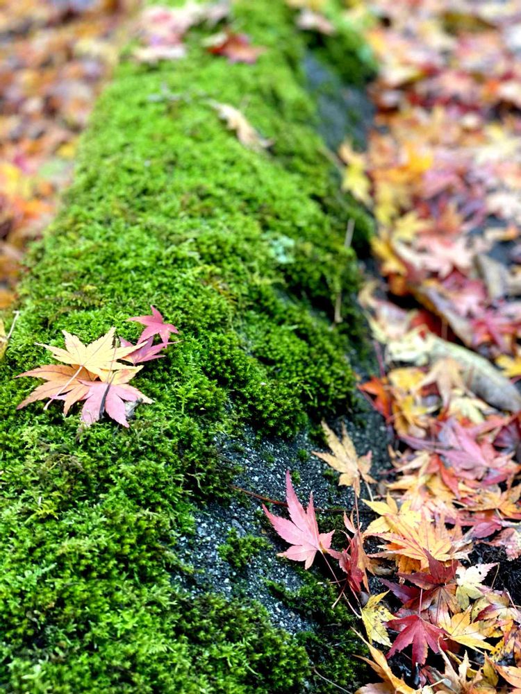 緑と散り紅葉のカラーコラボが美しかったです💕 あちこちの地面がこんな感じで彩られてました🎶