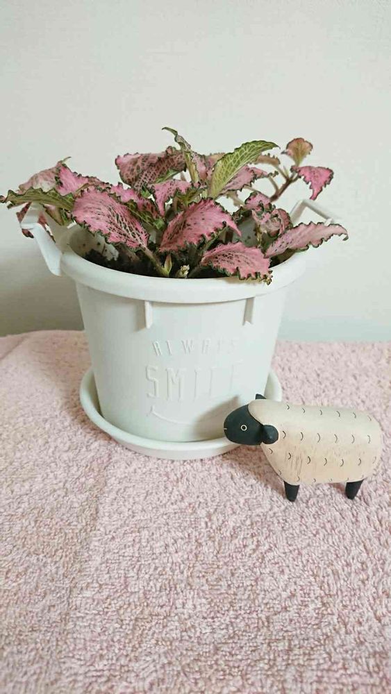 少し前に、寄せ植えのピンク・フィットニアを取り出して、室内に入れました♪